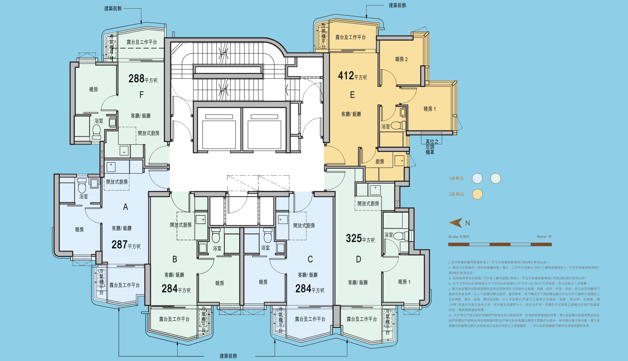 實用面積: 284’-412’(5-16/F)